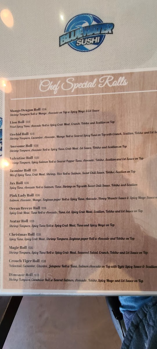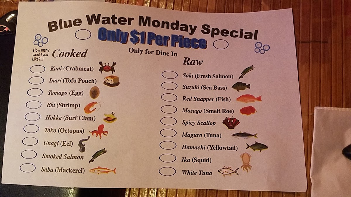 BlueWaterSushi Menu